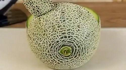 3. 切瓜:将哈密瓜切成两半,用勺子挖去瓜瓤,再沿着瓜肉和瓜皮的交界处,将瓜肉挖成一个个小碗状。